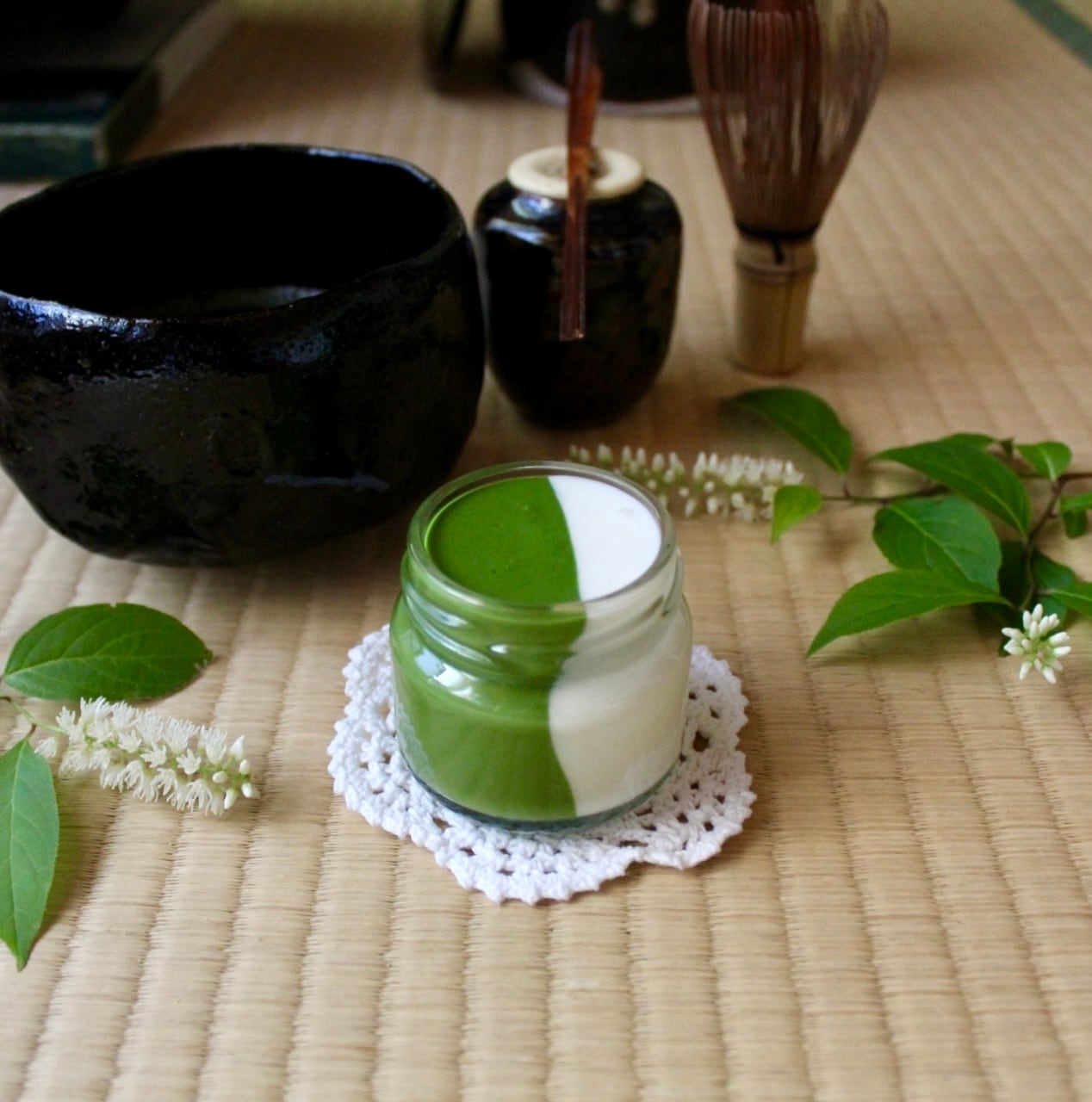 ミルクプリンは淡白かつクリーミーな味わいで抹茶と相性抜群。